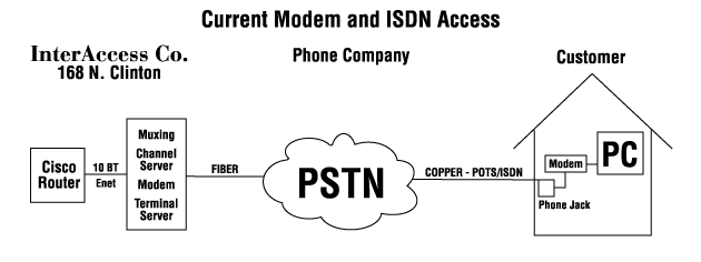 The figure above describes how the current modem operates with ISDN access.